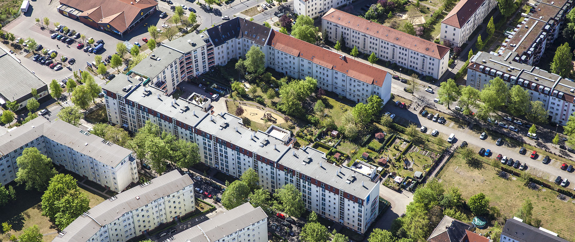 Unsere Wohnungen sind von gepflegten Grünanlagen und zwei Seen umgeben. Der nahegelegene Oberseepark mit seinem alten Wasserturm und das Strandbad Orankesee prägen das Wohngebiet und sorgen damit für eine hohe Erholungs- und Wohnqualität. Moderne Kunststofffenster mit Wärmeschutzverglasung nach den neuesten energetischen Anforderungen sowie barrierefreie Wohnräume, ebenerdige Aufzüge und Fahrradstellplätze gehören hier zur Grundausstattung. Supermärkte, Restaurants, Ärztehäuser und Bankfilialen sind zu Fuß erreichbar. Mit der guten öffentlichen Verkehrsanbindung, wie den Straßenbahnen und den Bussen, sind Sie in wenigen Minuten im Trubel des Stadtzentrums.